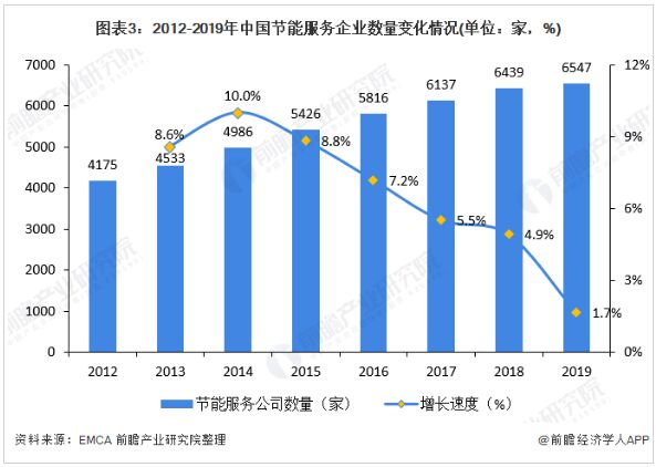 2019年EMCA的數據顯示,目前我國節能服務企業數量已經達到6547家,超過“十三五”規劃目標,未來,隨著國家對節能環保重視程度的不斷提高,我國節能服務企業數量將呈現進一步的增加。