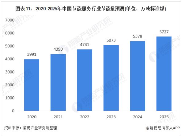 “十三五”結束后馬上迎來“十四五”,節能作為國家長期發展方針,前瞻認為國家對能源消耗的控制力度將越來越大,結合節能創新能力的提高,節能服務行業的節能能力也將隨之加強。2019年EMCA的數據顯示,我國節能服務產業節能能力從2012年1774.46萬噸標準煤增長到3801萬噸標準煤。預計在2025年,我國節能服務產業節能能力將超過5727萬噸標準煤。